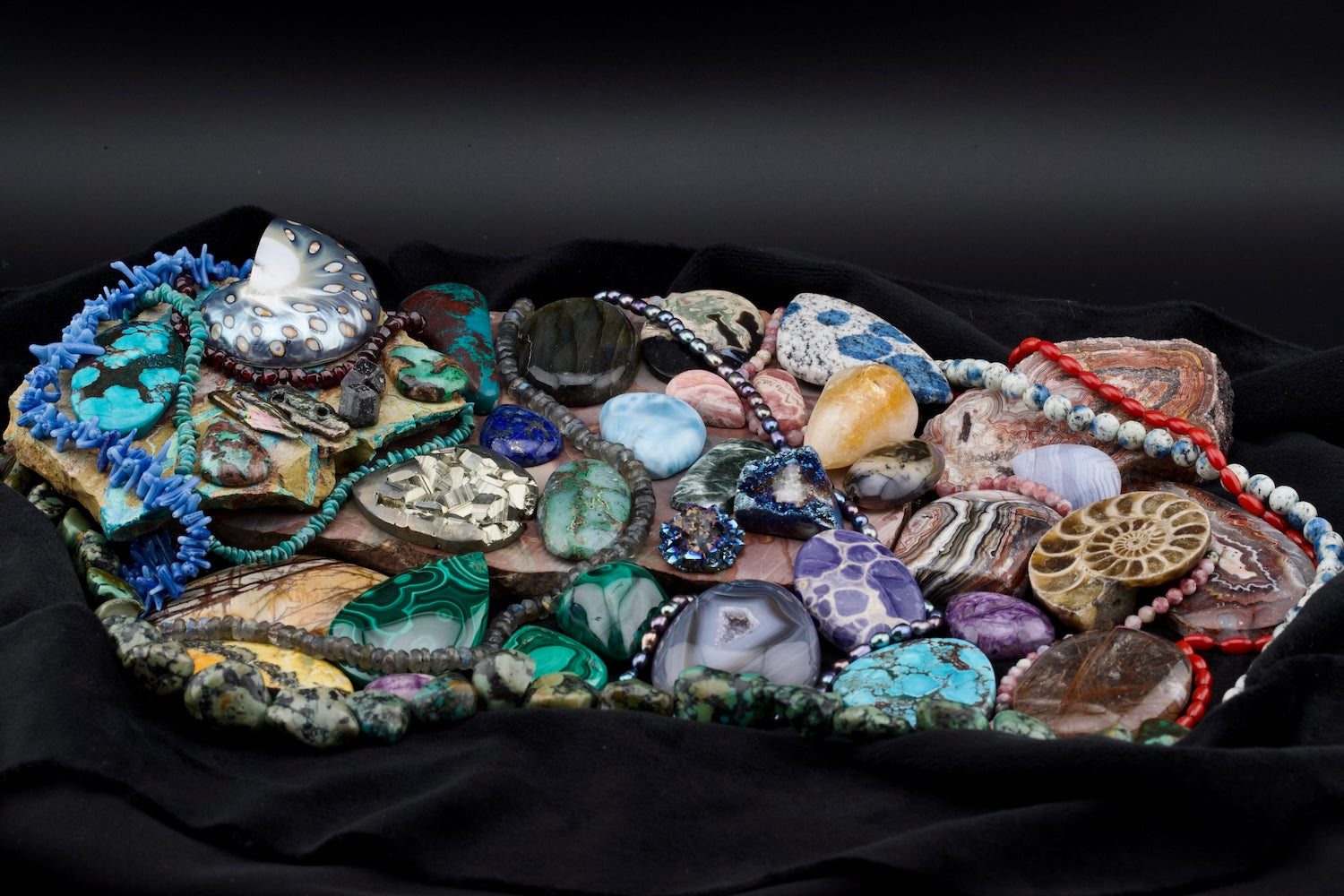 Unique pieces are coming! Deep greens veined like old forest floors, ocean blues pulled straight from cold water, fossil spirals older than memory, flashes of pyrite and crystal that catch that perfect light. Each piece will be designed to let the stone speak first.