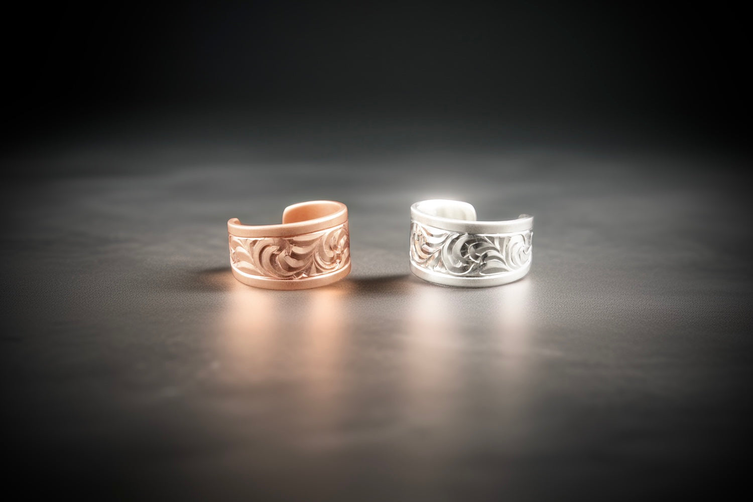 Hand-engraved sterling silver and copper jewelry that captures light with every movement. The Dance of Light Collection features flowing scrollwork in the timeless Lumenesque style, available as earrings, necklaces, and ear cuffs. Each piece is sealed with an invisible protective coating that preserves the metal's natural patina while reducing oxidation and potential skin sensitivity. Crafted by hand to honor traditional engraving as a living art form.