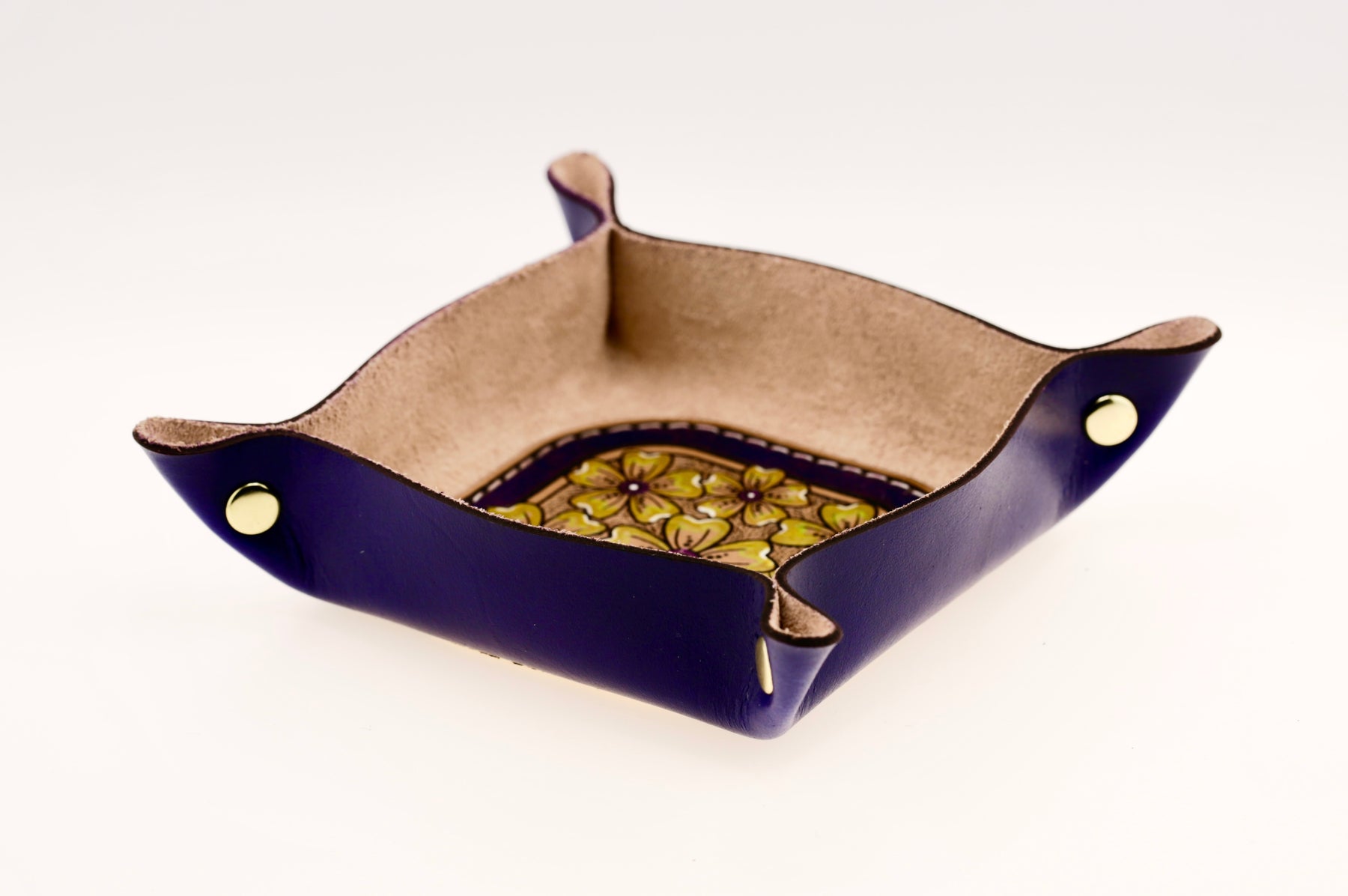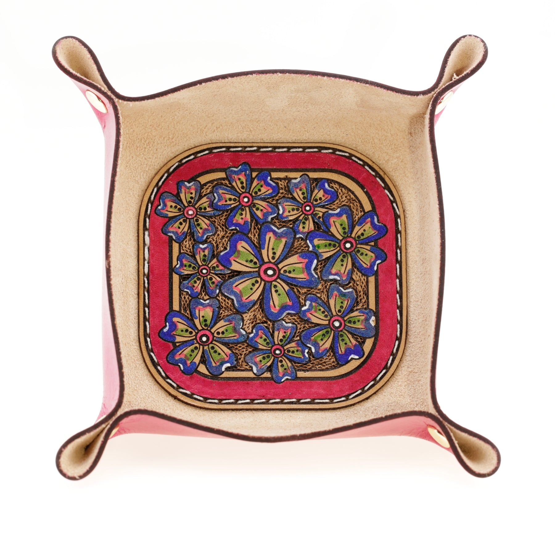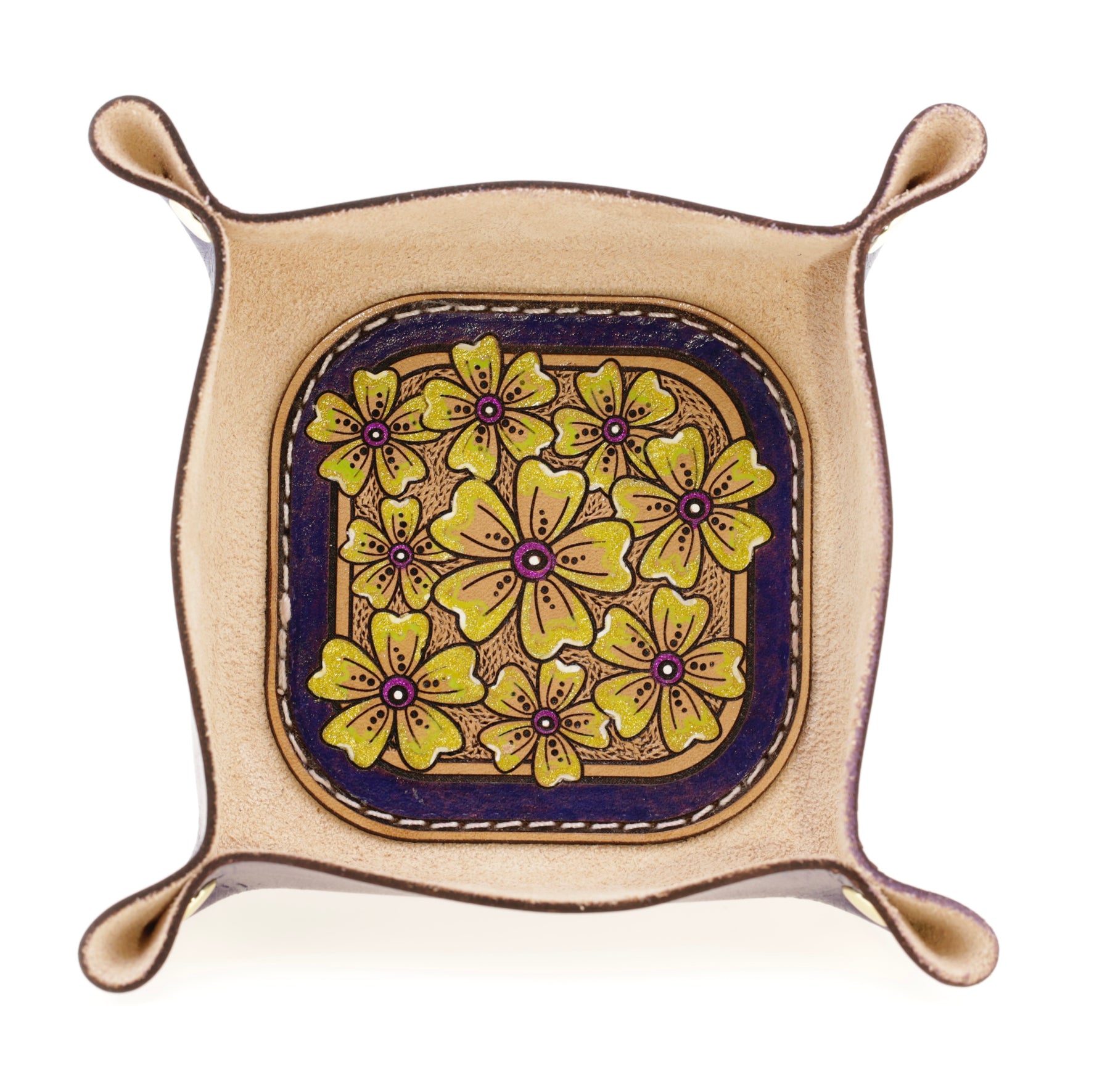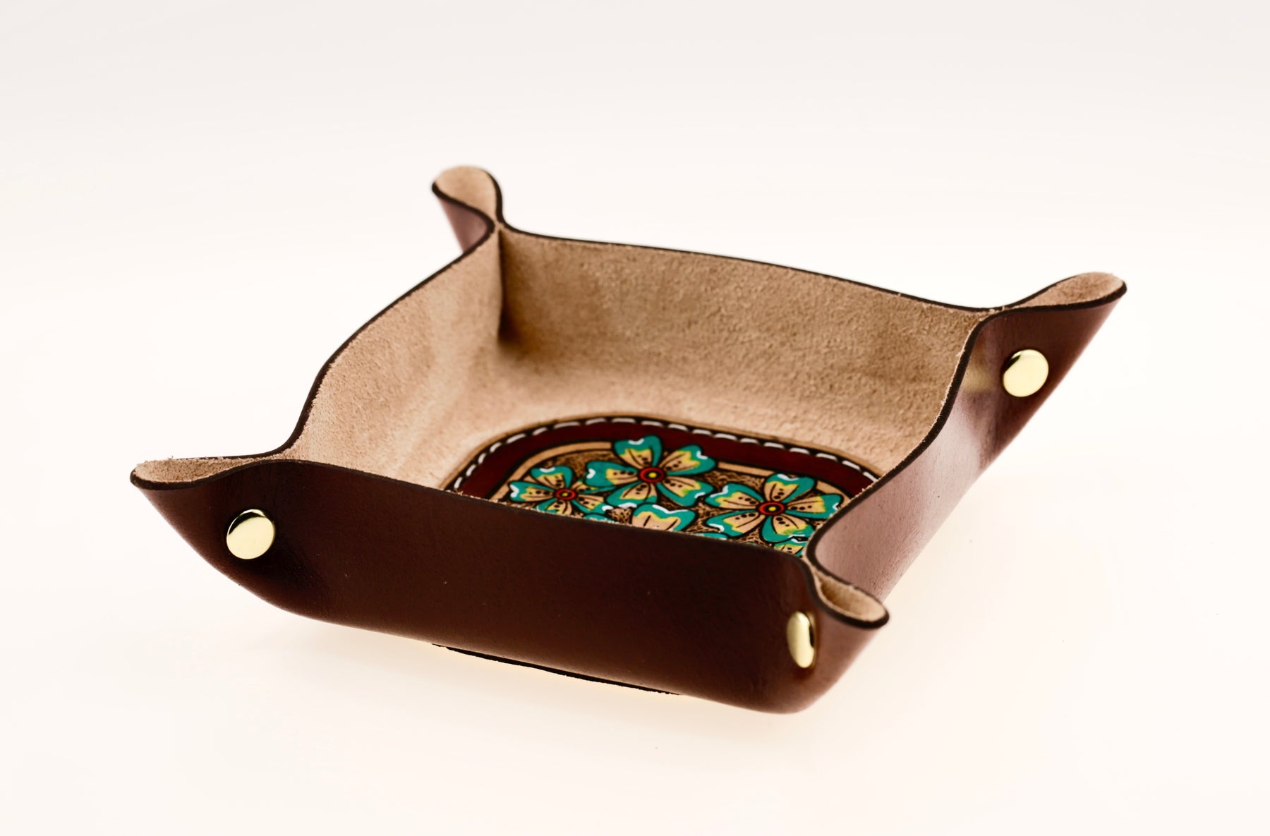 Wildflower Small Leather Valet - Hand-Tooled Organizer Tray